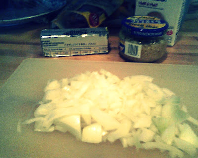 While the potatoes were softening, I chopped up some onions to saute, and got out the butter and the minced garlic.